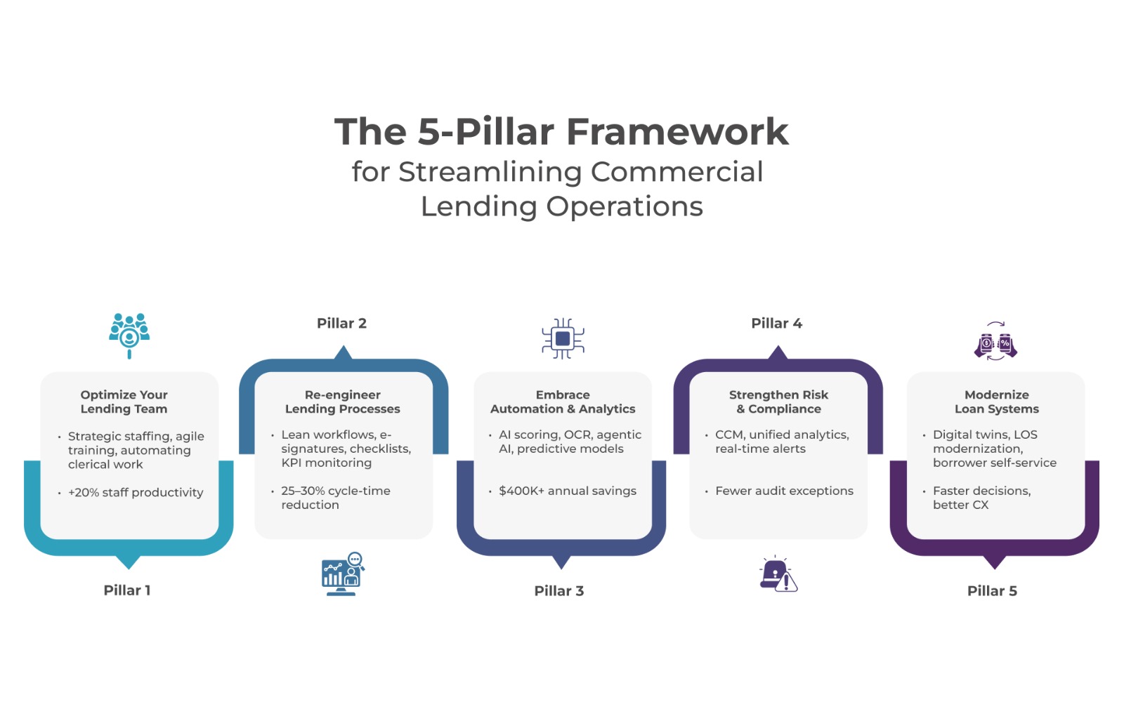 Discover five actionable strategies to enhance your commercial lending workflow. Learn how banks can optimize staffing, automate processes, and leverage AI to drive efficiency, compliance, and borrower satisfaction.